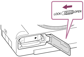 - Avaa kansi liu'uttamalla akun/muistikortin kannen kytkintä.