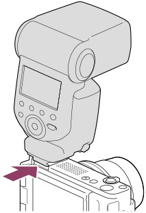 Se bruksanvisningen till blixten för närmare detaljer.- Montera blixten (säljs separat) på kameran.