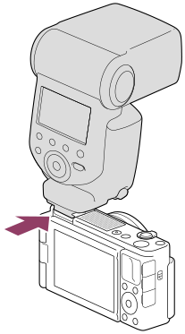 - Cuando utilice un flash externo para hacer la toma, podrán aparecer franjas claras y oscuras en la imagen si el tiempo de exposición está ajustado a menos de 1/4 000 segundo. En tal caso, Sony recomienda hacer la toma en el modo de flash manual y ajustar el nivel del flash a 1/2 o más.