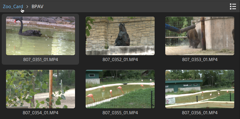 缩略图上的 表示包含用于镜头呼吸的元数据的剪辑。有关详细信息,请参阅"镜头呼吸补偿."