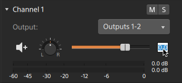 Ziehen Sie den Schieberegler, um die Lautstärke des ausgewählten Kanals anzupassen. Doppelklicken Sie auf die Mitte der Miniaturansicht, um den Schieberegler zurückzusetzen. Sie können auf den numerischen Wert doppelklicken, um einen neuen Wert einzugeben: