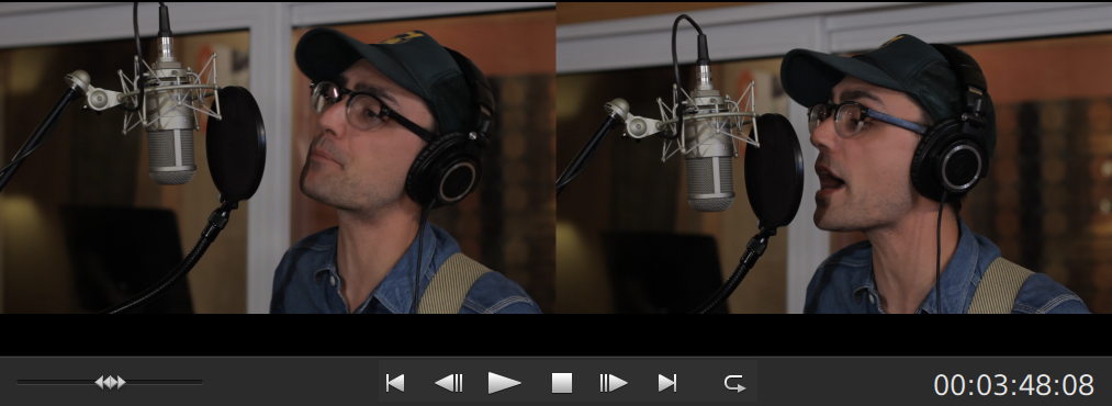 ビデオ プレビュー ウィンドウは、クリップをスリップまたはスリップトリミングする際に、一時的に分割画面プレビュー モードに入ります。この一時的な分割画面モードによって、編集の両側を同時に表示することができます。
