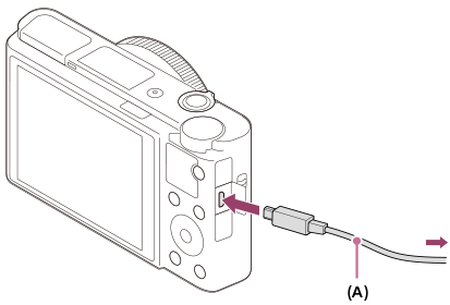 (Setup) е зададено на [Mass Storage]. - Свържете фотоапарата към компютъра чрез микро USB кабела (включен в комплекта) (A).