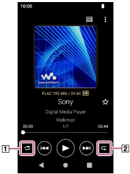 Zatim odaberite željeni način reprodukcije iz [Shuffle] ili [Repeat]. - Kada je prikazan popis zapisa, reprodukciju nasumičnog redoslijeda možete započeti uz prikazani popis pjesama kao raspon reprodukcije, tako da dotaknete gumb za nasumičnu reprodukciju .