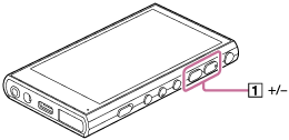 Nivelul volumului „Music player” poate fi prea ridicat sau prea scăzut dacă ați reglat volumul în timp ce ați utilizat altă aplicație. În acest caz, reglați volumul cu butoanele +/– (volum) (