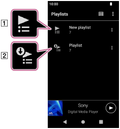 Na obrazovke knižnice v „Music player“ ťuknite na položku [Playlists].