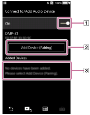 – [Settings] – [Connect to/Add Audio Device] ([Bluetooth]). -