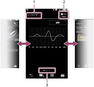- どの音質設定画面を表示していても、画面を下にフリックすると再生画面に戻ることができます。