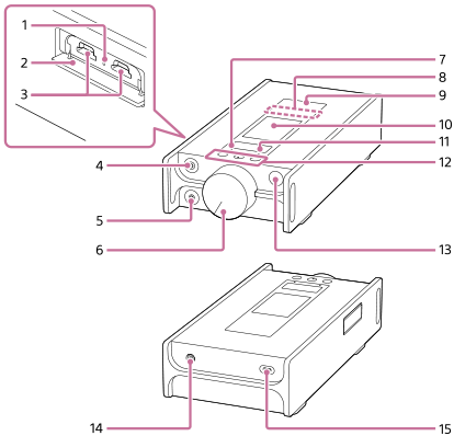 - Sluit alleen een passieve hoofdtelefoon (*1) op de hoofdtelefoonaansluiting aan (uitgebalanceerd standaard). Als u een audiokabel gebruikt om de hoofdtelefoonaansluiting (uitgebalanceerd standaard) op de lijningang van een audioapparaat aan te sluiten, kan dit schade aan het apparaat veroorzaken.