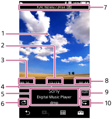 Когда плеер воспроизведения музыки через Bluetooth устройство (например, наушники), отображается следующая информация.