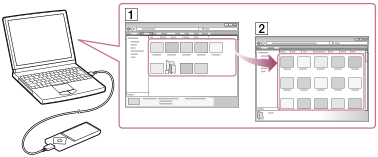 - Не изключвайте вашия Walkman по време на прехвърляне на данни. В противен случай данните, прехвърляни или съхранявани на вашия Walkman, е възможно да бъдат повредени. Ако връзката с вашия Walkman бъде прекъсната, докато се прехвърлят файлове, е възможно във вашия Walkman да останат ненужни файлове. В такъв случай прехвърлете използваемите файлове обратно на компютъра и форматирайте вашия Walkman.