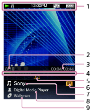 - Leidžiant VBR (kintamosios spartos bitais) dainas, praėjusio laiko ir laiko juostos indikatoriai gali būti nestabilūs ir netikslūs.