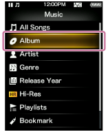 )-knappen for å velge ønsket funksjon (for eksempel [Album]), og trykk deretter på (