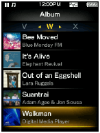 O índice apresenta uma lista de nomes de músicas ou de álbuns, juntamente com cada letra do alfabeto. Navegue pelo índice premindo o botão (