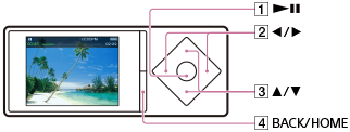 Na zaslonu za predvajanje videoposnetkov so na voljo spodnji kontrolniki. Predvajalnik Walkman predvaja videoposnetke v ležeči usmerjenosti.
