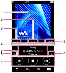 Pasirinkite elementą, jei norite peržiūrėti grojamo kūrinio informaciją. |