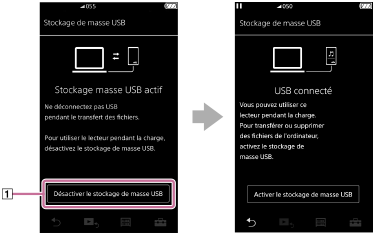– [Paramètres] – [Paramètres du lecteur] ([Paramètres de base]) – [Paramètres de connexion USB] – [Activer le stockage de masse USB] – [OK].