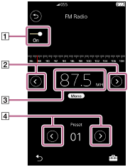 , tada [FM Radio Settings]. Tada bakstelėkite norimą parametrą [Mono/Auto].