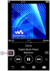 Jei galima dainos teksto informacija, atsiranda piktograma (