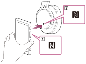 Se um dispositivo Bluetooth suportar a função NFC, pode ligar o Walkman e o dispositivo facilmente. Pode simplesmente tocar no Walkman para emparelhar os dispositivos e estabelecer uma ligação Bluetooth.
