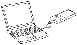 - Sluit uw Walkman aan op een ingeschakelde computer via USB.