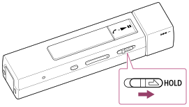 HOLDスイッチを矢印の方向にスライドする。