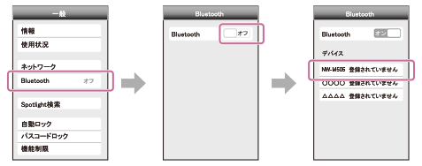 - iPhoneと“ウォークマン”のBluetooth機能をオンにする。