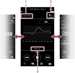 - どの音質設定画面を表示していても、画面を下にフリックすると再生画面に戻ることができます。