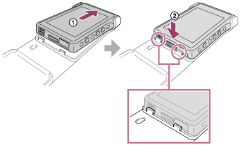 Koble de utstikkende delene på bærevesken til sporene på Walkman.