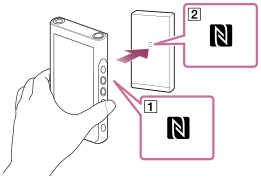 Hvis en smarttelefon har støtte for NFC-funksjonen, kan du enkelt koble sammen Walkman og smarttelefonen. Du kan sammenkoble enhetene og etablere en Bluetooth-forbindelse ganske enkelt ved å berøre Walkman med smarttelefonen.