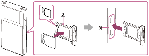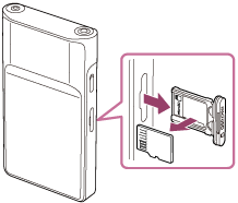- Quando manuseia a bandeja para cartão microSD, certifique-se de que a direção está correta. Além disso, certifique-se de que move a bandeja de forma reta e suave. A força excessiva pode provocar danos ou deformação.