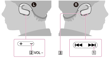 )ヘッドホン側のボタン(