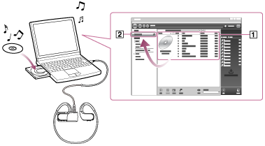 - ウォークマンに転送した音楽コンテンツは、パソコンにも同時に取り込まれます。