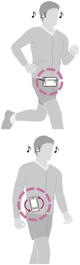 - Dešinėje „Walkman“ pusėje yra įmontuota „Bluetooth“ antena. Jei garsas pertraukiamas, pabandykite atlikti šiuos veiksmus: