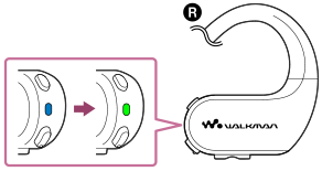 ) mirksės. „Walkman“ bus automatiškai prisijungtas prie paskutinio prijungto „Bluetooth“ įrenginio ir lemputės įsijungs.