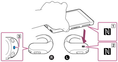 Keď sa prehrávačom Walkman dotknete smartfónu, Walkman sa zapne a automaticky sa spáruje so smartfónom.