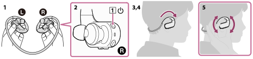 ) na 3 sekundy zapnite Walkman. - Popruh na krk si zaveste cez vrch uší a za hlavu.