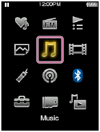 Menuen Home er startpunktet for alle applikationer, såsom dem til søgning efter sange og ændring af indstillinger.