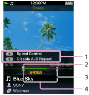 使用舞蹈模式时,可以重复播放音频文件中的指定区间(从A点至B点)(A-B重复)。