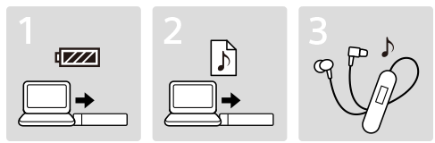 Pred prvým použitím prehrávača Walkman nezabudnite nabiť batériu. Počas nabíjania batérie môžete prenášať hudbu. Hudbu môžete počúvať ihneď po dokončení prenosu.