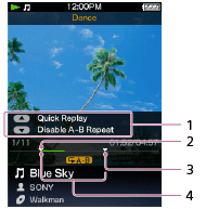 I dansetilstand kan du afspille en bestemt del (fra punkt A til punkt B) af en lydfil gentagne gange (A-B gentag afspilning).
