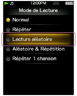 ) pour sélectionner le menu de votre choix (par exemple [Lecture aléatoire]), puis appuyez sur la touche