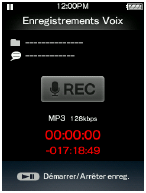 Vous pouvez procéder à des enregistrements vocaux à l'aide du microphone intégré et lire les fichiers vocaux enregistrés. Les fichiers sont enregistrés au format MP3.