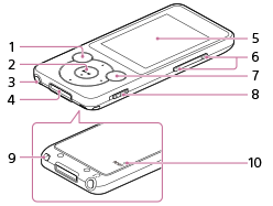 V tejto časti sú vysvetlené funkcie tlačidiel, konektorov a iných častí prehrávača Walkman.