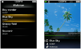 Domovskú ponuku zobrazíte stlačením a podržaním tlačidla BACK/HOME na prehrávači Walkman.
