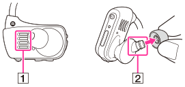 IPX8 (stupne ochrany voči dlhodobému ponoreniu do vody): Prehrávač Walkman, na ktorom sú nasadené štandardné podložky slúchadiel, si zachová prevádzkyschopnosť aj po ponorení do hĺbky 2 m pod vodnou hladinou počas 30 minút.