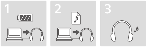 Pirms Walkman atskaņotāja pirmās lietošanas reizes obligāti uzlādējiet bateriju. Mūziku var pārsūtīt baterijas uzlādes laikā.Varat arī klausīties mūzikas paraugus, kas ir pirminstalēti Walkman atskaņotājā.Varat klausīties mūziku, tiklīdz pārsūtīšana ir pabeigta.
