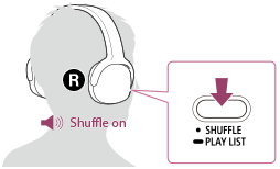 U hoort het gesproken bericht "Shuffle" en alle nummers worden in willekeurige volgorde afgespeeld. Als u het willekeurig afspelen wilt sluiten, drukt u nogmaals op de SHUFFLE/PLAYLIST toets.