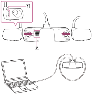 Tilslut din Walkman til en computer via USB for at oplade din Walkman eller overføre data.