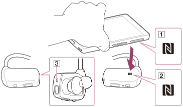 Απλά ακουμπήστε το συμβατό με τη λειτουργία NFC smartphone στο Walkman σας για να ενεργοποιήσετε αυτόματα το Walkman, να εκτελέσετε ζεύξη του Walkman και του smartphone και να πραγματοποιήσετε μια σύνδεση Bluetooth.
